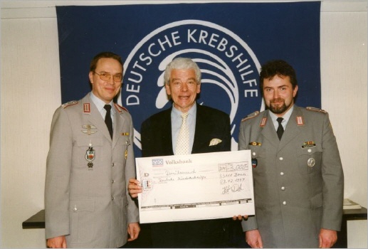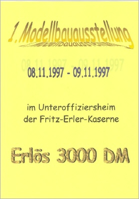 19. Mai 2020 Christian 1. Modellbauausstellung 08.11.1997 – 09.11.1997 Scheckübergabe Oberstleutnant Matthias Kohnen, Geschäftsführer der Deutschen Kinder-Krebshilfe Achim Ebert, Stabsfeldwebel Helmut Duntemann (von links nach rechts)