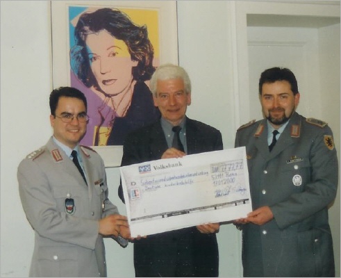 19. Mai 2020 Christian 2. Modellbauausstellung 06.11.1999 – 07.11.1999 Scheckübergabe Hauptmann Dr. Döring, Herr Ebert (Deutsche Krebshilfe), Stabsfeldwebel Helmut Dunteman (von Links nach Rechts)
